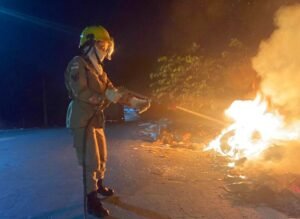 Uma equipe de bombeiros que integra a Operação Céu Limpo combateu, na noite da quinta-feira (25/07), um incêndio em
