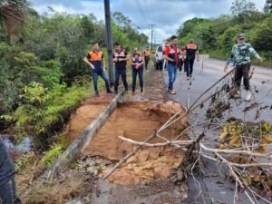 A Defesa Civil do Amazonas comunica a ocorrência de erosão em uma seção da rodovia estadual AM-352, na altura