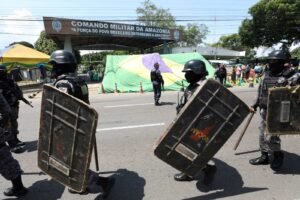 As forças de Segurança Pública do Governo do Amazonas, em conjunto com órgãos municipais, retiraram o acampamento de manifestantes