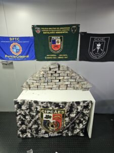 A Polícia Federal apreendeu, nosábado (20/7), cloridrato de cocaína e pasta base, totalizando 77kg de entorpecente, durante fiscalização em