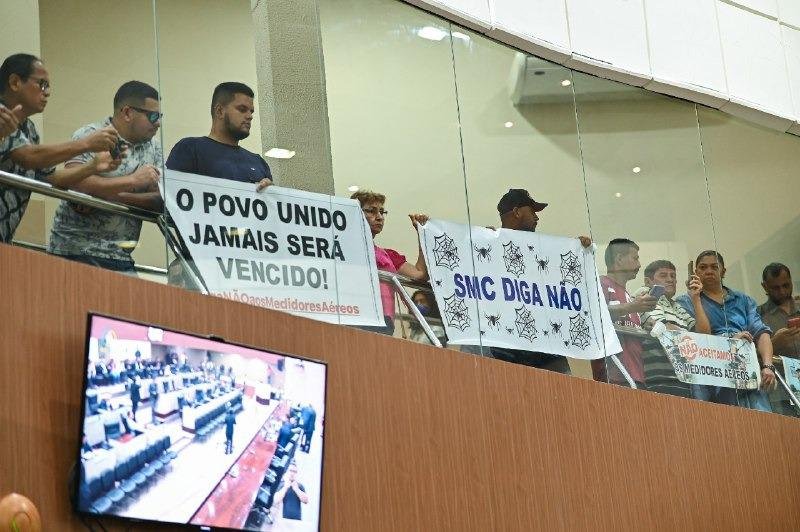 Em Reunião Ordinária realizada nesta quarta-feira (22/03) no Plenário Adriano Jorge, na Câmara Municipal de Manaus (CMM), o Projeto de Lei nº 375/2022, de autoria do vereador Caio André, que proíbe a instalação de medidores aéreos de energia em Manaus, recebeu apoio de todos os parlamentares e da população, que novamente esteve na Câmara se manifestando contrária à instalação.