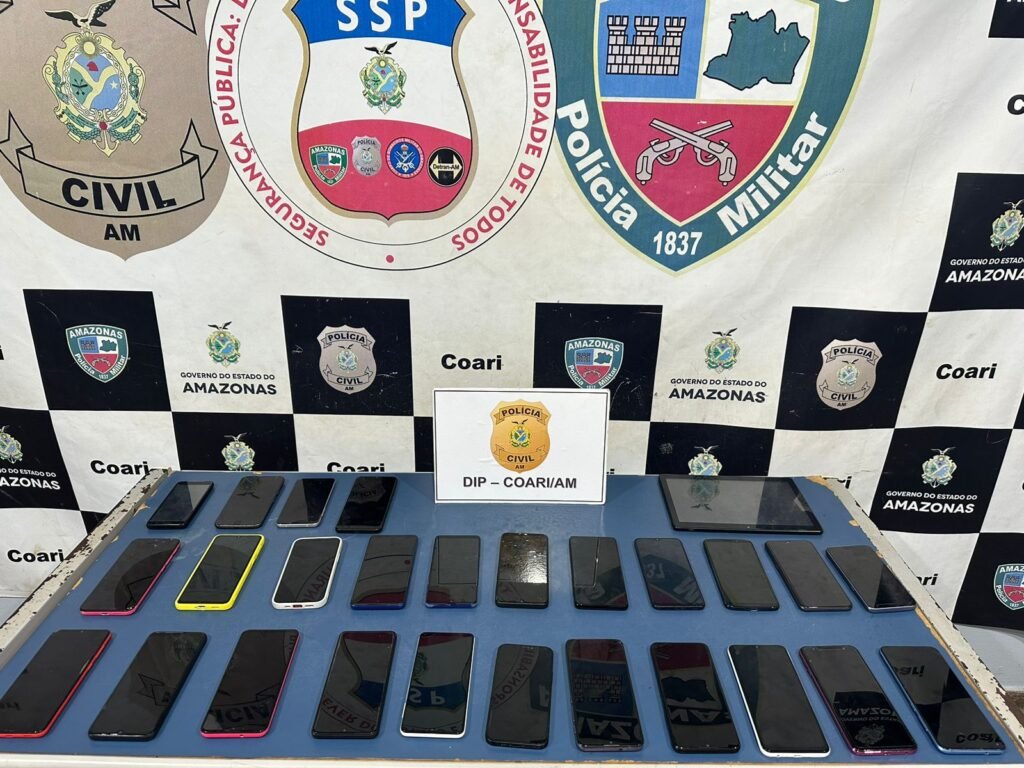A Polícia Civil do Amazonas (PC-AM), por meio da Delegacia Interativa de Polícia (DIP) de Coari (a 363 quilômetros de Manaus), deflagrou, nesta quarta-feira (19), a Operação Off-line que resultou na recuperação de 27 celulares roubados e furtados durante o mês de abril, naquele município.