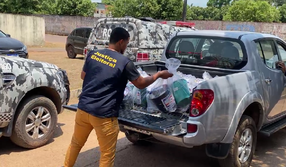 Após denúncia da população, a Comissão de Fiscalização Eleitoral foi até o local da distribuição que acontecia na Quadra Poliesportiva do bairro de Santo Antônio, em Itacoatiara. Foram apreendidas 16 cestas básicas, 9 fogões, 116 kits de limpeza, 23 colchões, 153 kits de higiene, entre outros produtos.